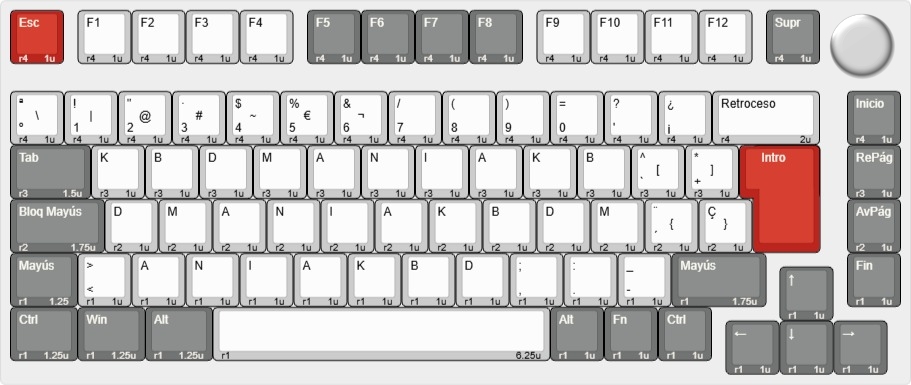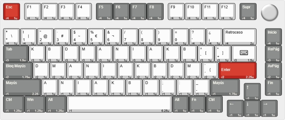 Te presentamos el layout para este modelo tanto en ISO como en ANSI. Podrás comprobar la compatibilidad con nuestros sets de keycaps o con cualquier otro del mercado. Si buscas otro modelo puedes solicitarlo en nuestra lista de propuestas o por mensaje en cualquier red social.