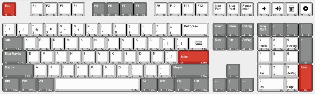 Te presentamos el layout para este modelo tanto en ISO como en ANSI. Podrás comprobar la compatibilidad con nuestros sets de keycaps o con cualquier otro del mercado.  Si buscas otro modelo puedes solicitarlo en nuestra lista de propuestas o por mensaje en cualquier red social.
