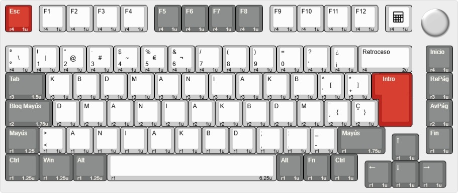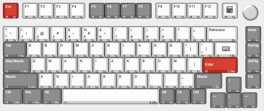 Te presentamos el layout para este modelo tanto en ISO como en ANSI. Podrás comprobar la compatibilidad con nuestros sets de keycaps o con cualquier otro del mercado.  Si buscas otro modelo puedes solicitarlo en nuestra lista de propuestas o por mensaje en cualquier red social.
