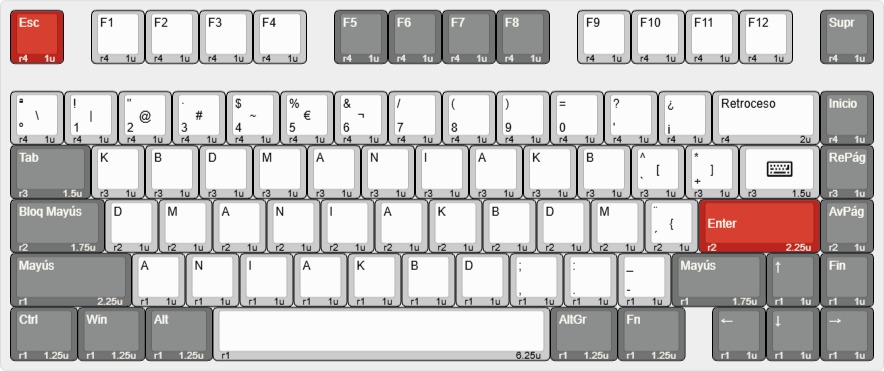 Te presentamos el layout para este modelo tanto en ISO como en ANSI. Podrás comprobar la compatibilidad con nuestros sets de keycaps o con cualquier otro del mercado.  Si buscas otro modelo puedes solicitarlo en nuestra lista de propuestas o por mensaje en cualquier red social.