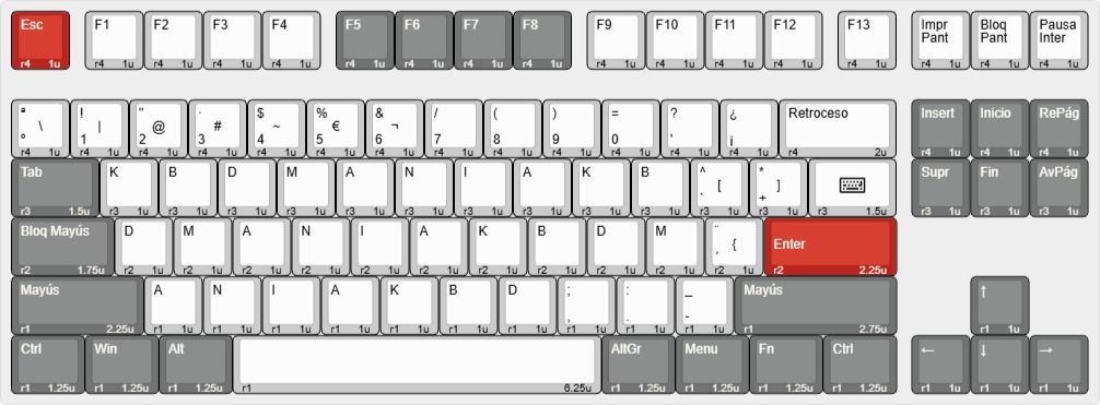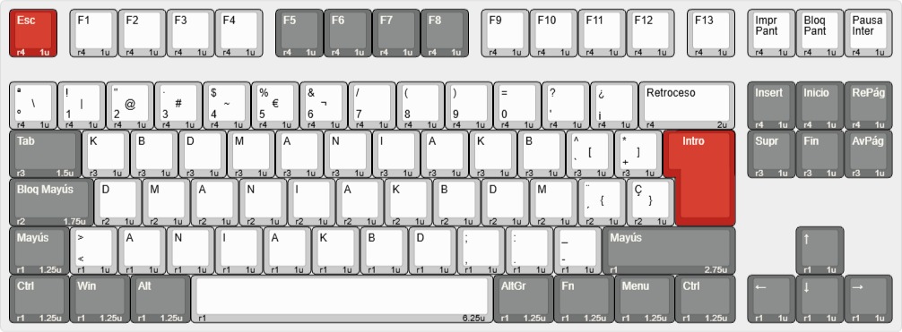 Te presentamos el layout para este modelo tanto en ISO como en ANSI. Podrás comprobar la compatibilidad con nuestros sets de keycaps o con cualquier otro del mercado. Si buscas otro modelo puedes solicitarlo en nuestra lista de propuestas o por mensaje en cualquier red social.