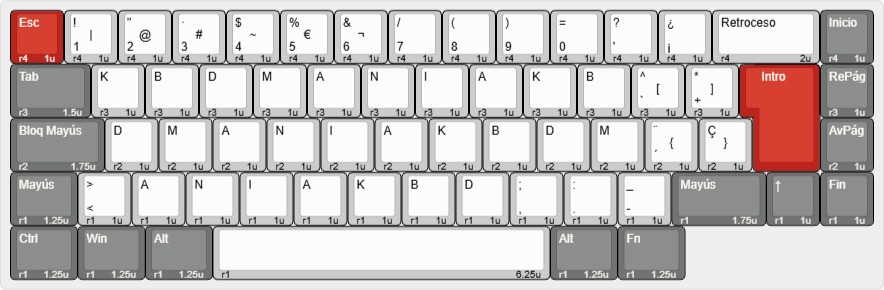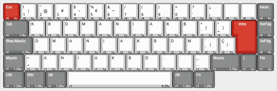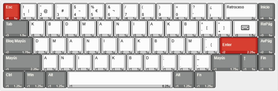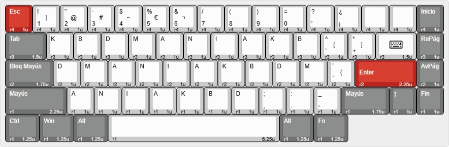 Te presentamos el layout para este modelo tanto en ISO como en ANSI. Podrás comprobar la compatibilidad con nuestros sets de keycaps o con cualquier otro del mercado. Si buscas otro modelo puedes solicitarlo en nuestra lista de propuestas o por mensaje en cualquier red social.