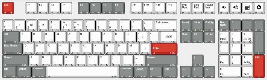 Sets kbdmania 145 keycaps: KEYCAPS INTERMEDIAS FILA R4 DEBEN SUSTITUIRSE Y MAPEARSE CON FUNCIONES TIPO «IMPR PANT» «SUPR» «PAUSA» ETC.