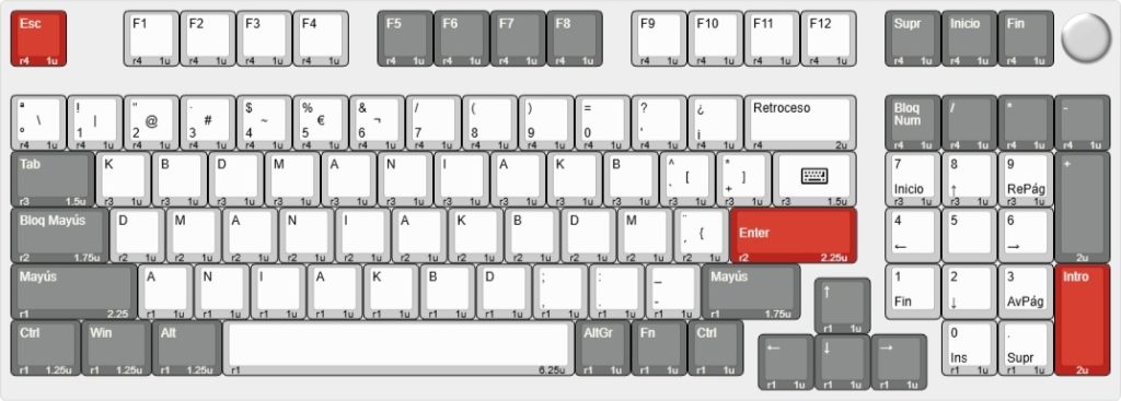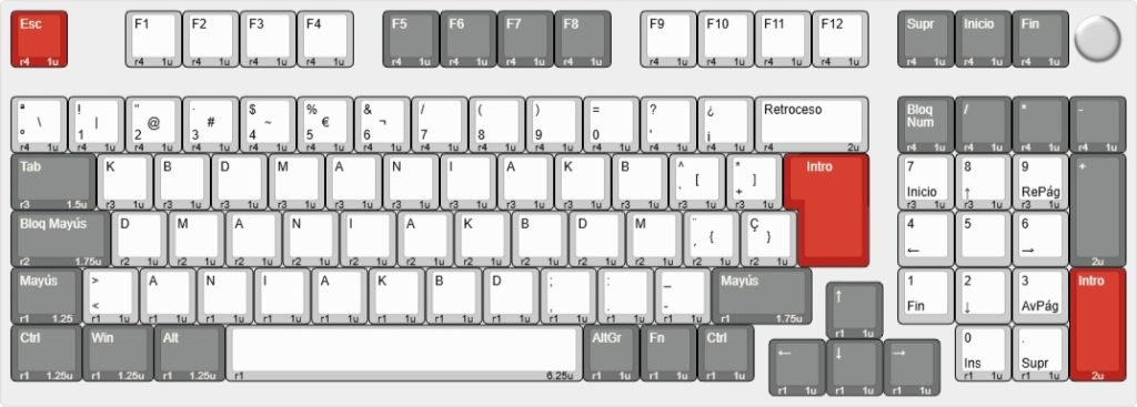 Te presentamos el layout para este modelo tanto en ISO como en ANSI. Podrás comprobar la compatibilidad con nuestros sets de keycaps o con cualquier otro del mercado.  Si buscas otro modelo puedes solicitarlo en nuestra lista de propuestas o por mensaje en cualquier red social.