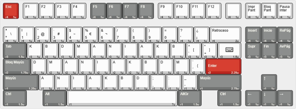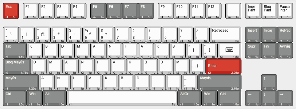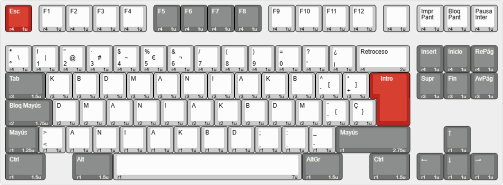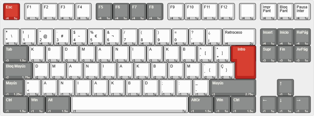 Te presentamos el layout para este modelo tanto en ISO como en ANSI. Podrás comprobar la compatibilidad con nuestros sets de keycaps o con cualquier otro del mercado. Si buscas otro modelo puedes solicitarlo en nuestra lista de propuestas o por mensaje en cualquier red social.