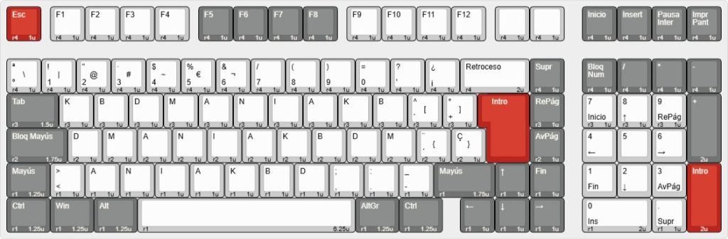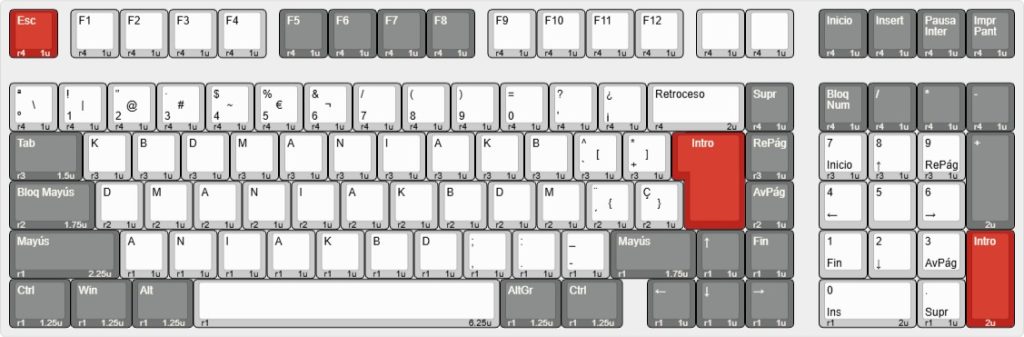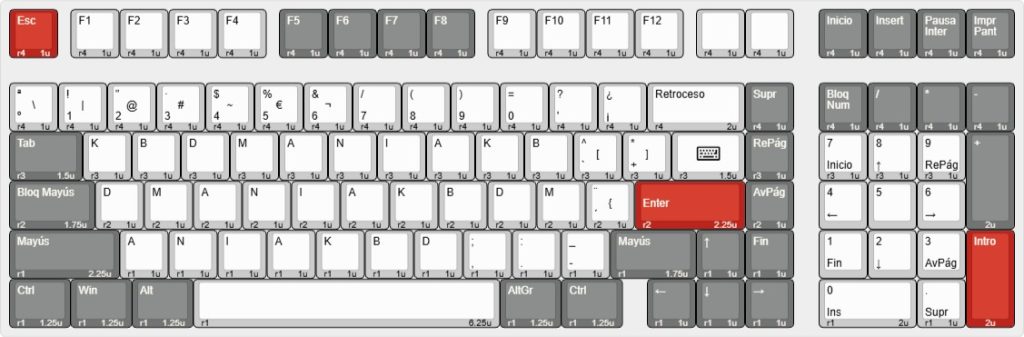 Te presentamos el layout para este modelo tanto en ISO como en ANSI. Podrás comprobar la compatibilidad con nuestros sets de keycaps o con cualquier otro del mercado. Si buscas otro modelo puedes solicitarlo en nuestra lista de propuestas o por mensaje en cualquier red social.