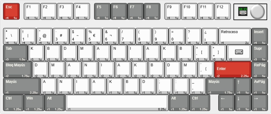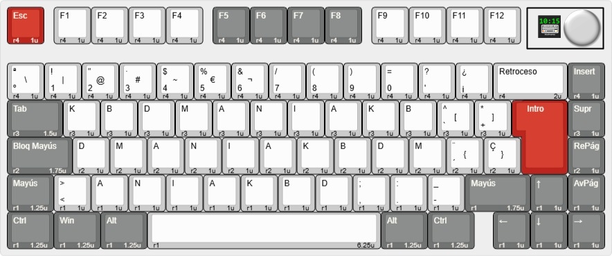 Te presentamos el layout para este modelo tanto en ISO como en ANSI. Podrás comprobar la compatibilidad con nuestros sets de keycaps o con cualquier otro del mercado. Si buscas otro modelo puedes solicitarlo en nuestra lista de propuestas o por mensaje en cualquier red social.