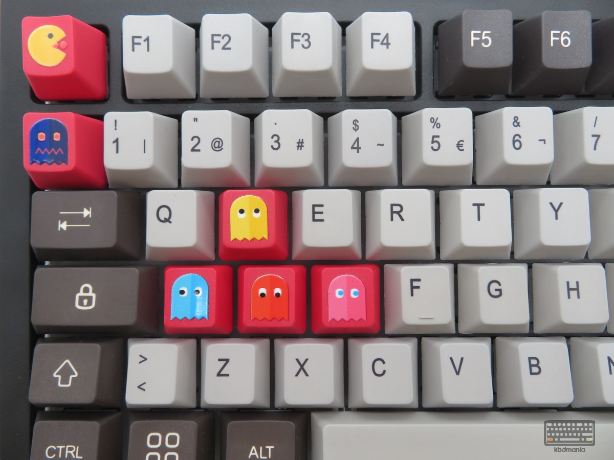 Motivo Comecocos que pueden ser para ESC , funciones o fila de números. En perfil cherry y material PBT de gran calidad. Válido para teclados mecánicos con conectores CHERRY MX.