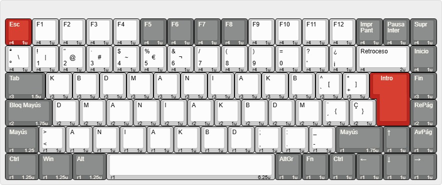 Te presentamos el layout para este modelo tanto en ISO como en ANSI. Podrás comprobar la compatibilidad con nuestros sets de keycaps o con cualquier otro del mercado.  Si buscas otro modelo puedes solicitarlo en nuestra lista de propuestas o por mensaje en cualquier red social.